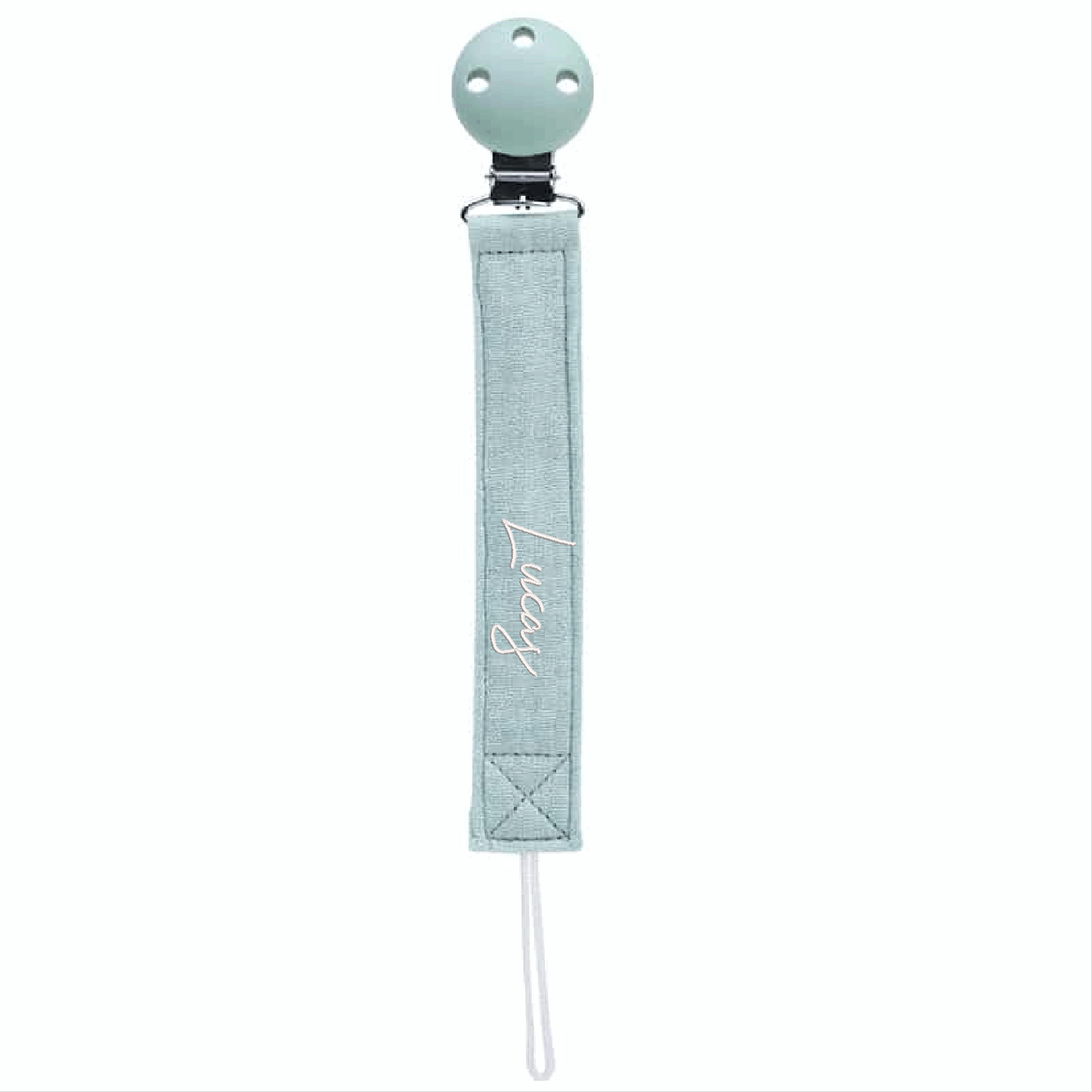 Stonegreen speenkoord van Funnies, gemaakt van 100% katoen en gepersonaliseerd met een geborduurde naam. Voorzien van een veilige BPA-vrije clip en geschikt voor dagelijks gebruik.