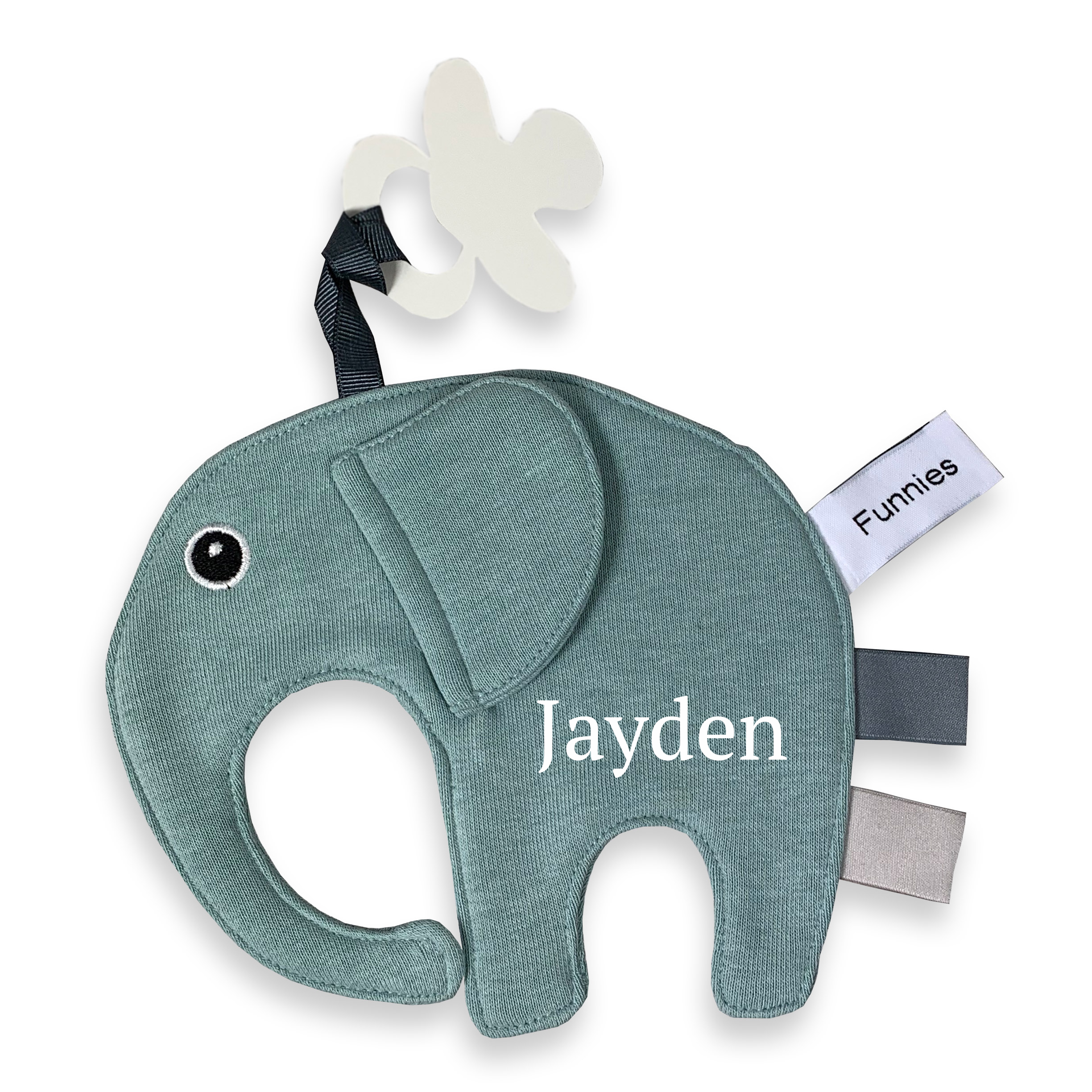 Knuffeltje olifant met naam | Geborduurd oor – Grijs